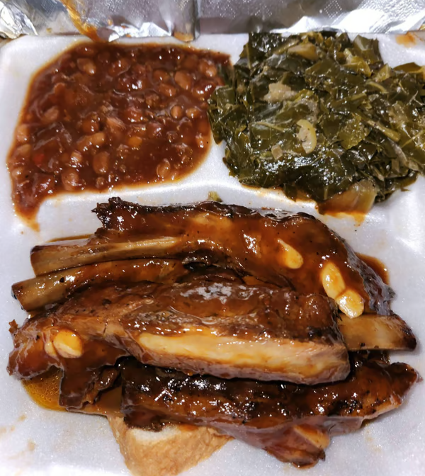 The menu leans heavily into classic barbecue and soul food, and it does so with confidence. One of the standout favorites is the BBQ ribs-slow-cooked, tender, and coated in rich flavor that clings to every bite. They pair naturally with hearty sides like mac and cheese or the corn casserole, both of which deliver that warm, homemade taste people expect from a trusted local diner. The BBQ sandwich is another go-to, piled generously and served hot, making it a solid choice for lunch or a quick dinner stop.
