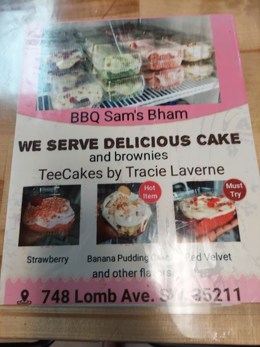 When it comes to satisfying your sweet tooth, BBQ Sam's offers a range of delectable Desserts. Try the Sweet Potato Pie (Individual) or the moist Pound Cake, or indulge in the zesty Keylime Cake. There's also the rich Red Velvet and the fun Strawberry Crunch Cake for those who want a colorful finish to their meal.